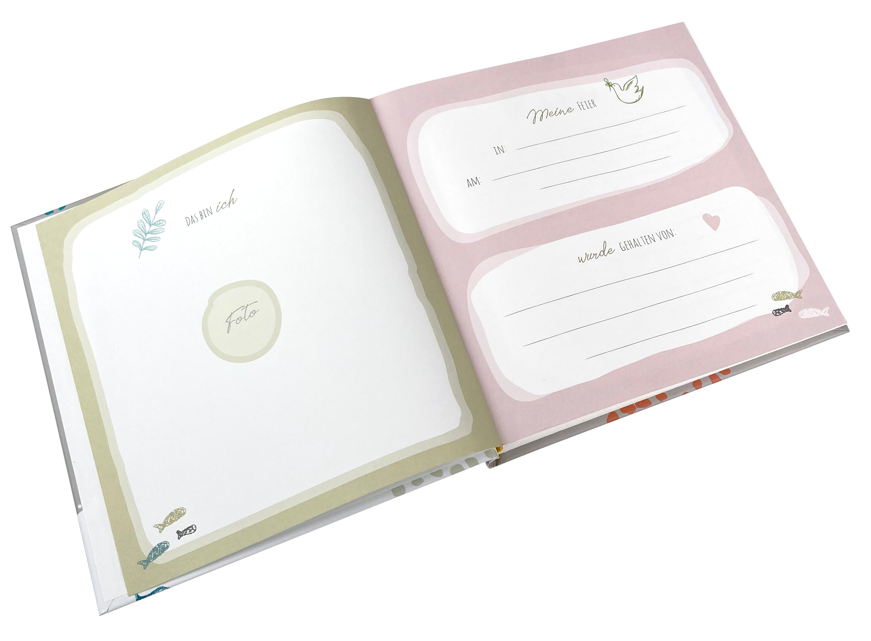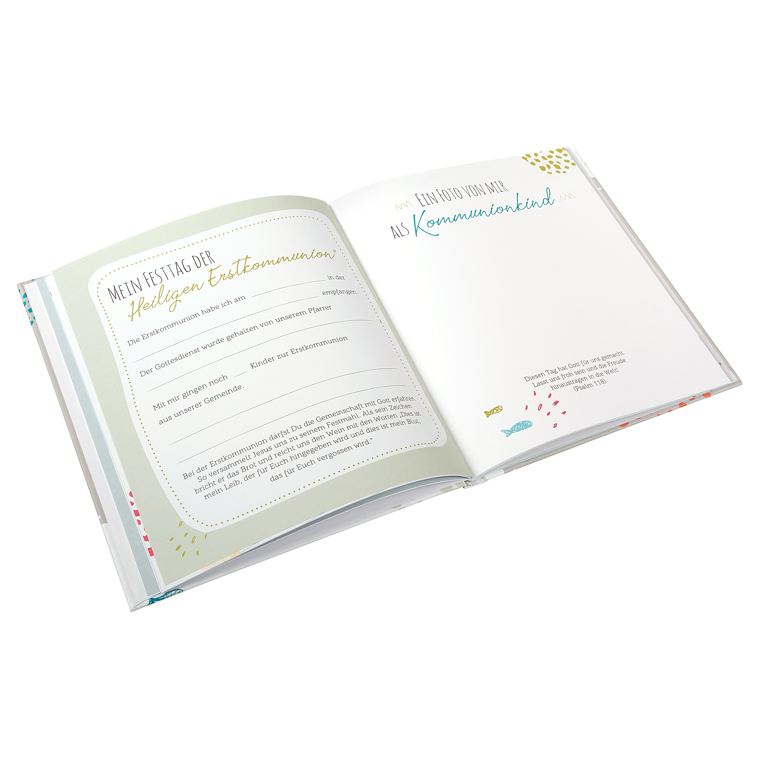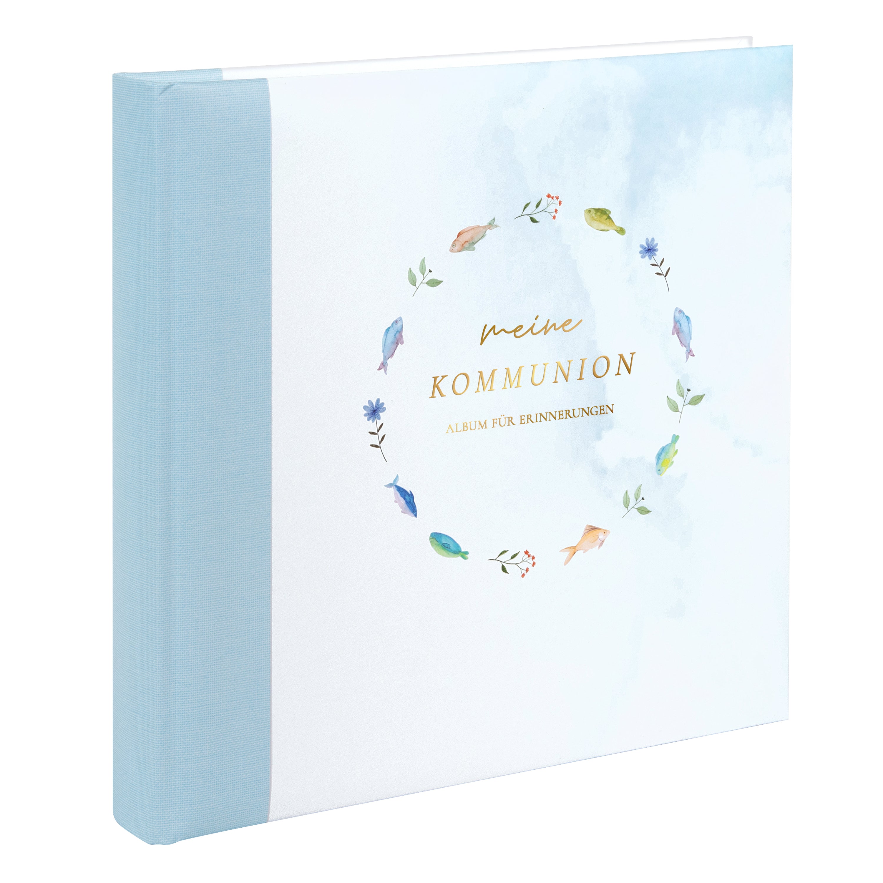 - Kommunion-Fotoalben mit christlichen Symbolen wie Kreuz, Kelch oder Fisch