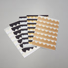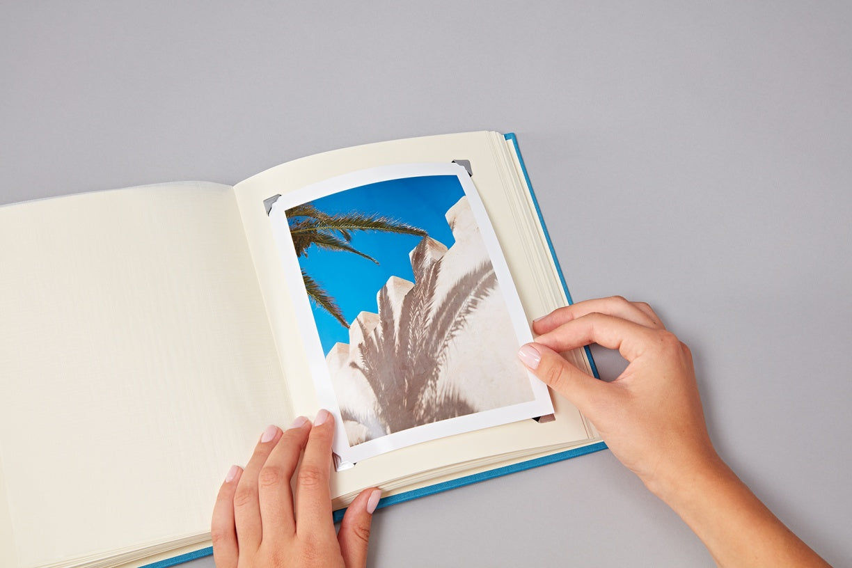 The Semikolon photo corners offer the possibility of fixing photos in a photo album and replacing them without damaging them. The decorative helpers come in black, gold, chamois, silver and kraft paper.