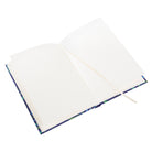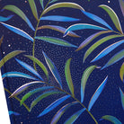 Notebook Tropical in size DIN A5 with art print cover with silver embossing and relief on the front. The whole notebook is kept in a blue hue. The book block is made with elaborate thread binding in the size 15 x 22 cm and has a bookmark.