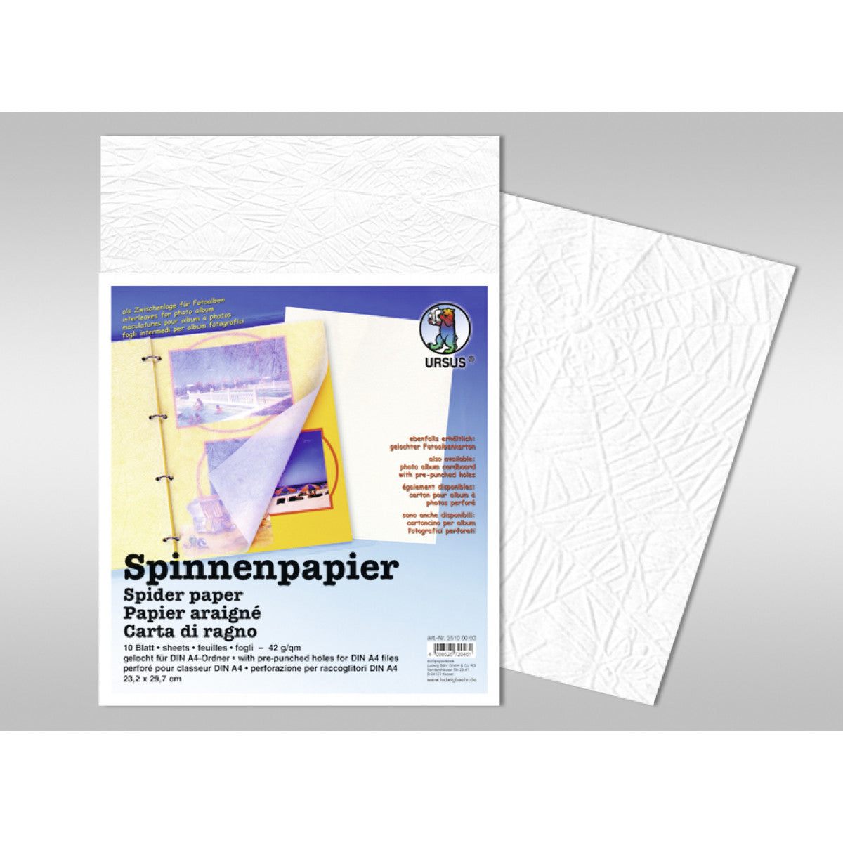 Tracing paper with spider embossing from Ursus as an intermediate layer for photo albums with a paper weight of 42 g/m². A total of 100 white sheets in A4 size.