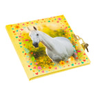 CHIARA is a mare on a summer meadow with fine decorations such as flowers, leaves and hearts in different colors. The background of the motif is a delicate shade of yellow. This design makes every heart beat faster!