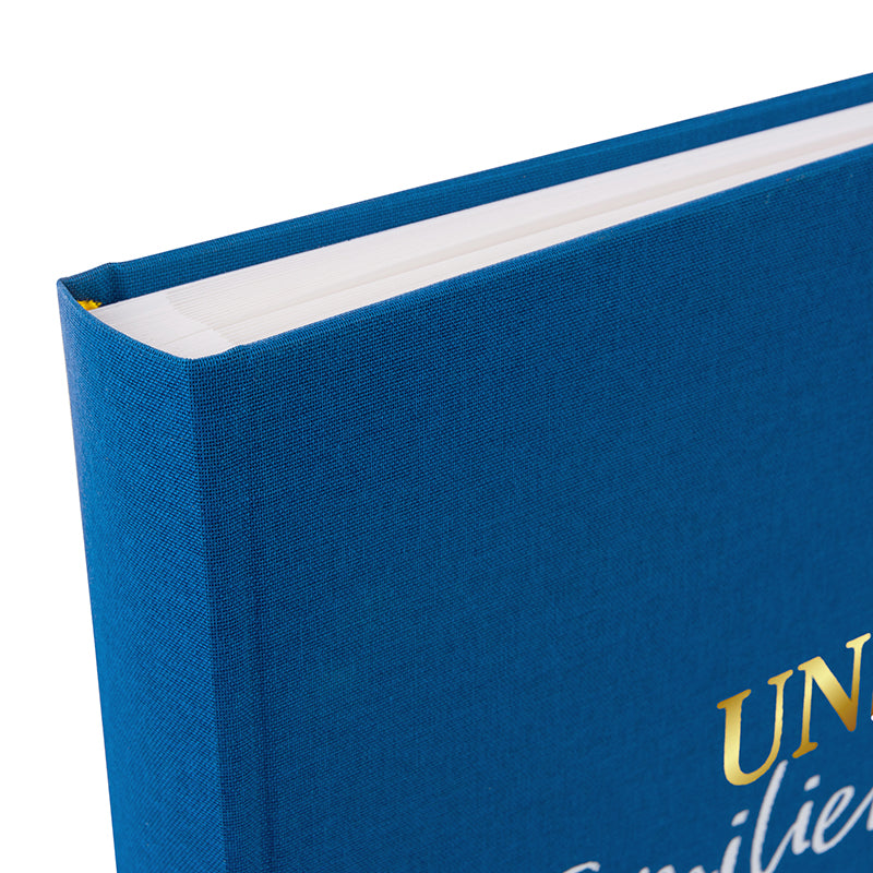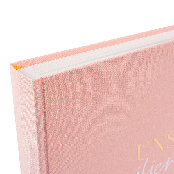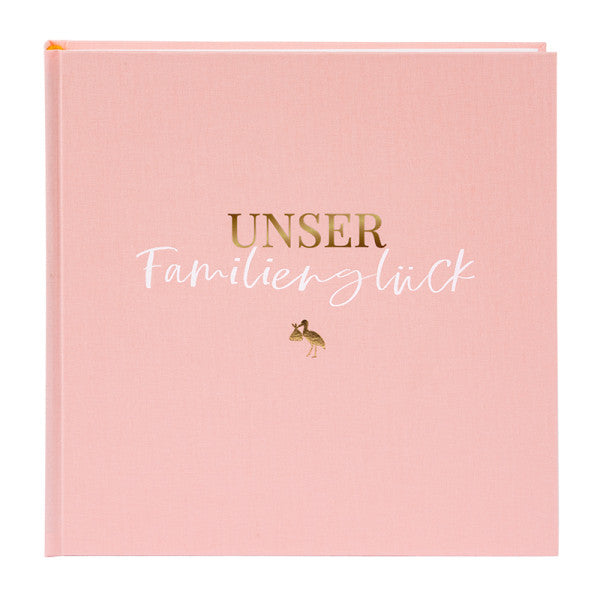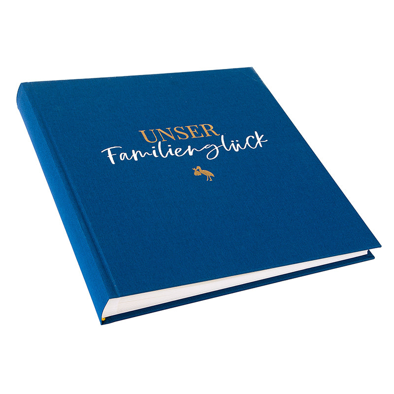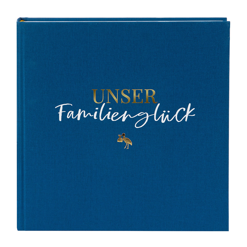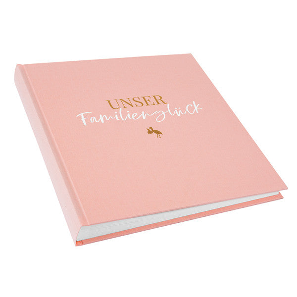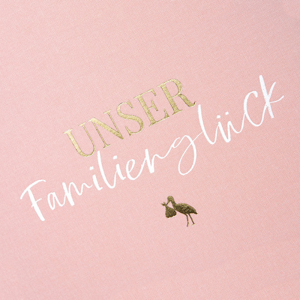 Der Einband ist mit der fein abgestimmten Prägung 'Unser Familienglück' veredelt.